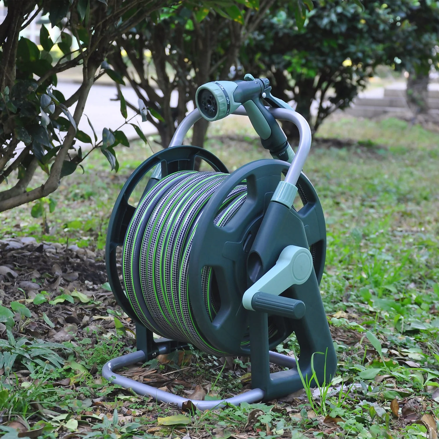 This premium hose and reel set is ideal for watering your beds, borders, pots and hanging baskets. Water flow won’t be interrupted thanks to the knitting technology within the hose preventing kinks.