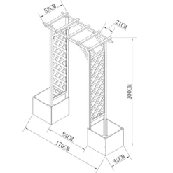This beautiful garden arch with trellis and side planters will add height and interest to your garden and provide sturdy support for your climbing plants. Add plants such as climbing roses or clematis to trail over the arch and add bedding plants and shrubs to the side planters to create a stunning display.