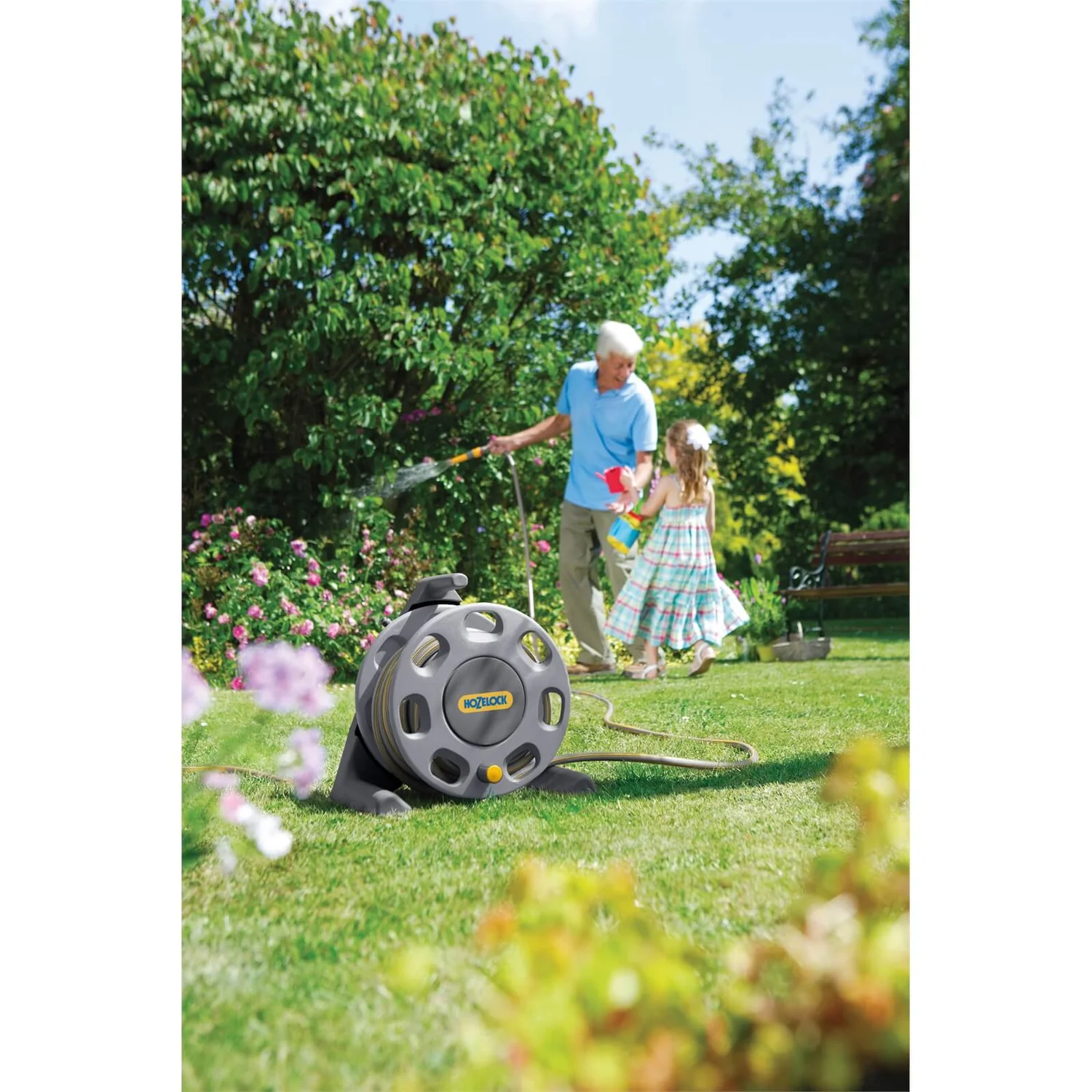 The Hozelock freestanding hose reel is the ideal hose storage system that comes with 20m of 12.5mm multi-purpose hose (can hold up to 30m of hose if required).