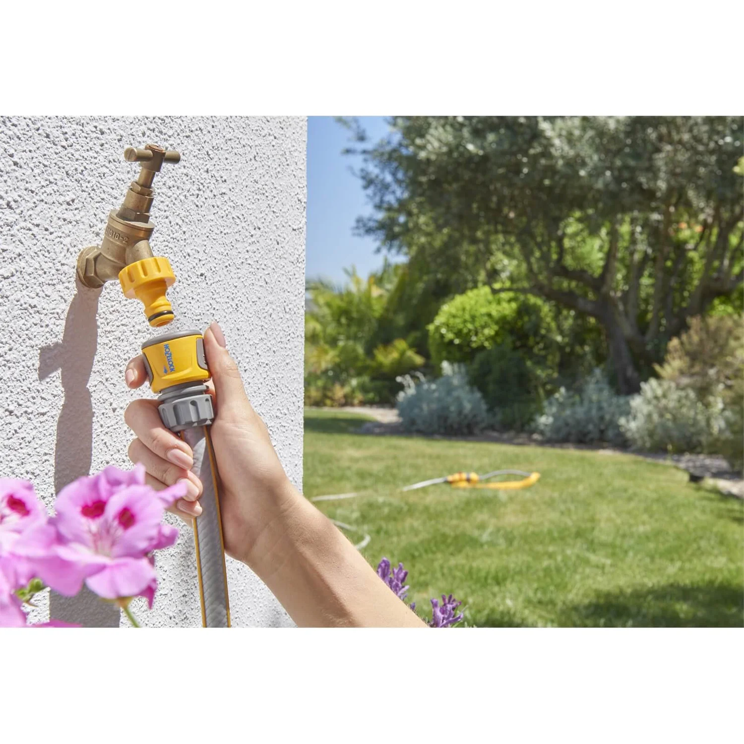 This Hozelock set includes a high-quality threaded tap connector & hose end connector.
