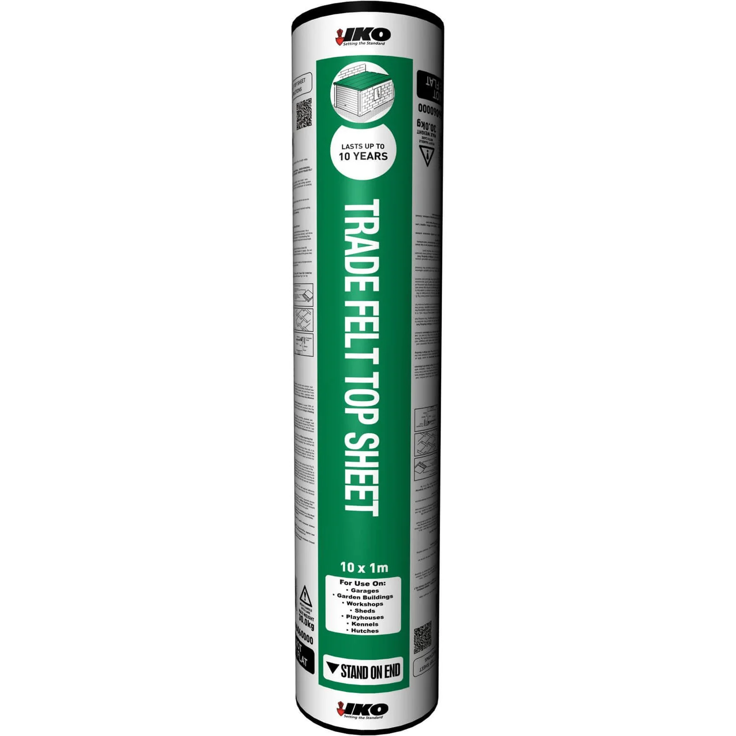 IKO Trade Felt Top Sheet is a heavyweight, green slate surfaced top layer and is ideal for use as the cap sheet to a multi-layer system or a single layer on shed roofs