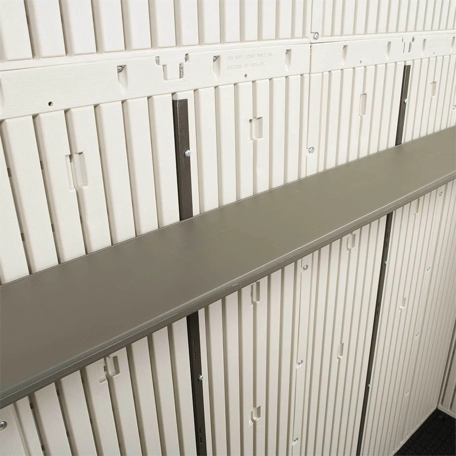 The Lifetime 8 ft. x 15 ft. Outdoor storage shed features: 5 small skylights, 2 shatter-proof windows, 2 screened vents, 1 90 x 9. shelf, 2 30 x 10. shelves, 2 corner shelves, and a 10-year limited warranty. Floor and installation hardware included. Arrives packaged in 3 boxes.