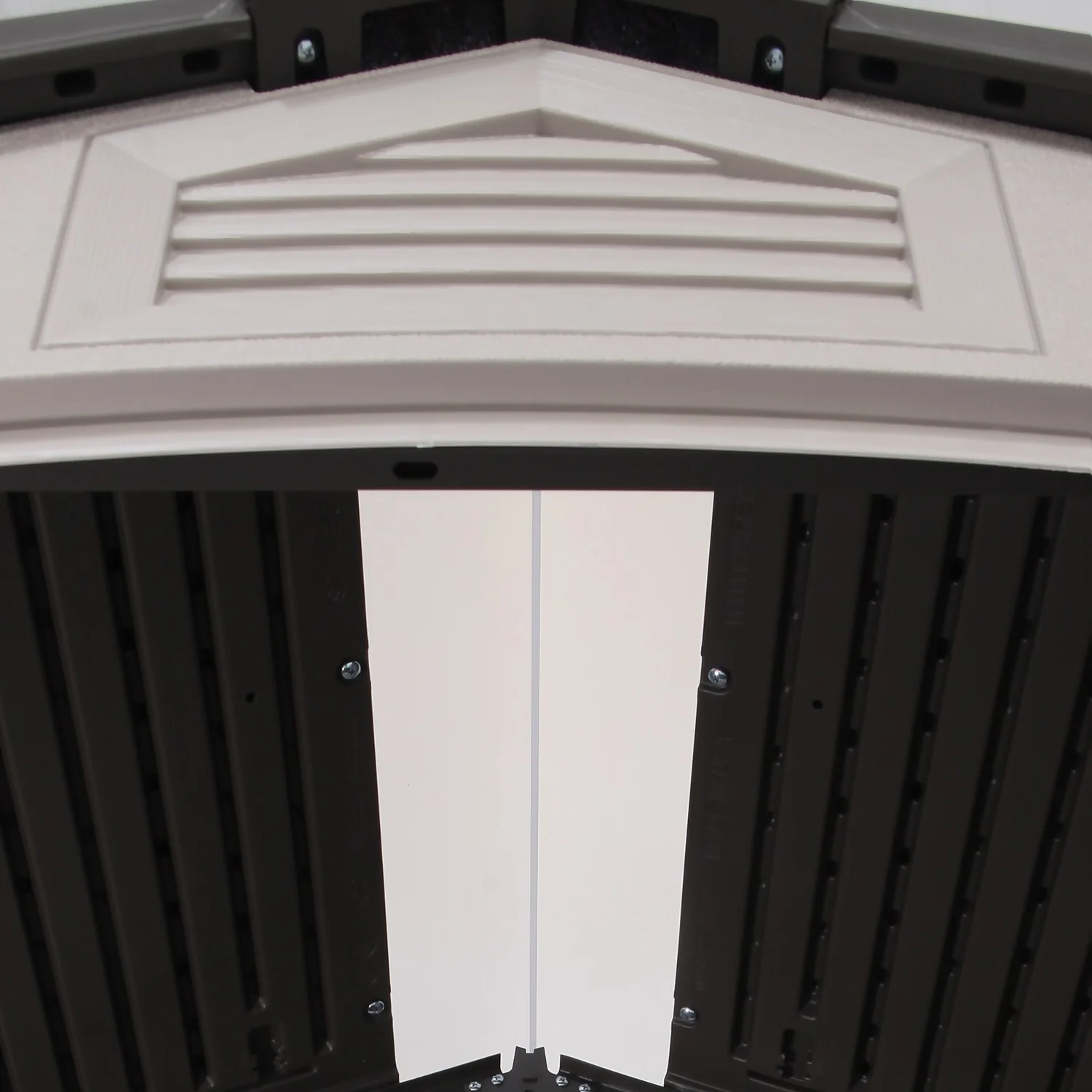 - Outdoor Storage Shed features: turning slider latch, (1) full-length skylight, (1) shatter-proof polycarbonate window, (2) screened vents, and a 10-year limited warranty. Floor and installation hardware included. Comes in (2) boxes